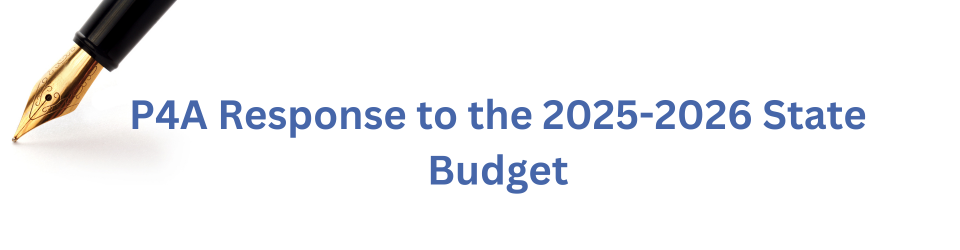 On behalf of the Pennsylvania Association of Area Agencies on Aging (P4A) and the more than 548,000 older Pennsylvanians age 60+ our member Area Agencies on Aging support, we want to congratulate Governor Josh Shapiro and the General Assembly on the passage of the $50.1 billion state budget for Fiscal Year 2025-2026. The investments made in this budget will have huge impacts in supporting, defending, and protecting the needs of the people of this Commonwealth.